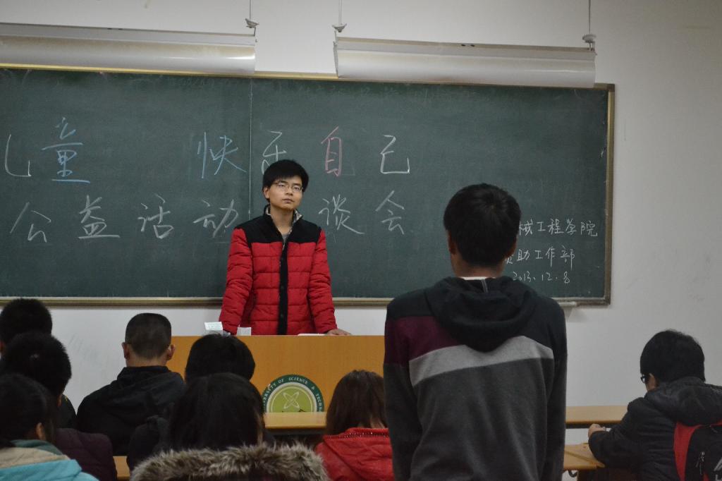 2013年12月8日晚,williamhill中国官方网站资助工作部在10教512召开了以“关爱儿童,快乐自己”为主题的公益活动座谈会,本次会议由大二资助工作部委员杨庚庚主持,参加特殊儿童学校之行的全体同学到会。