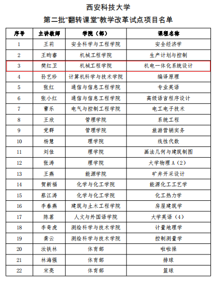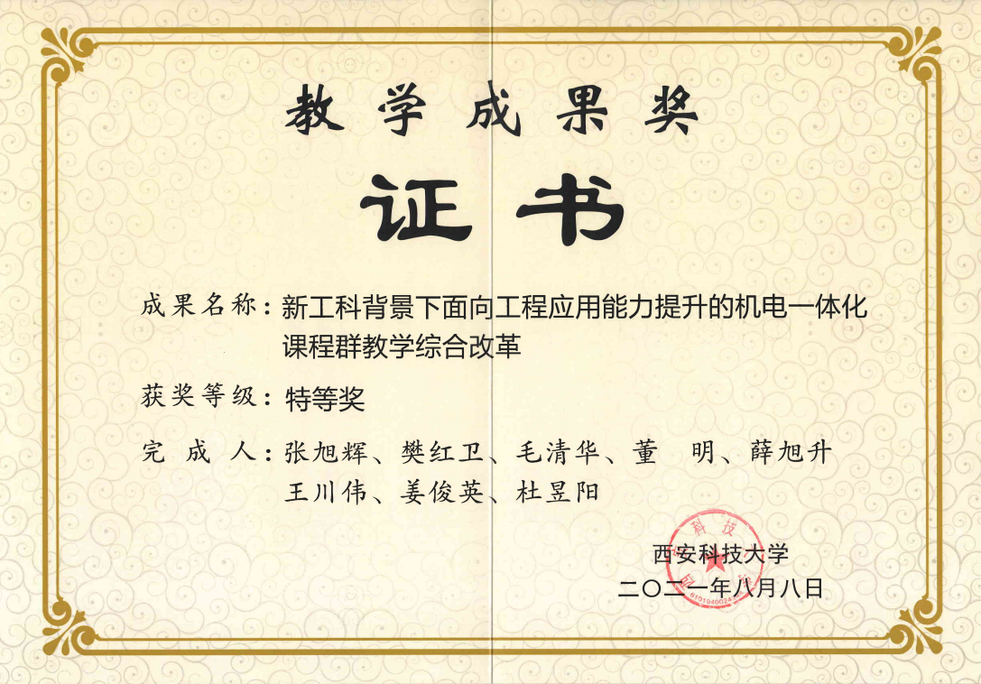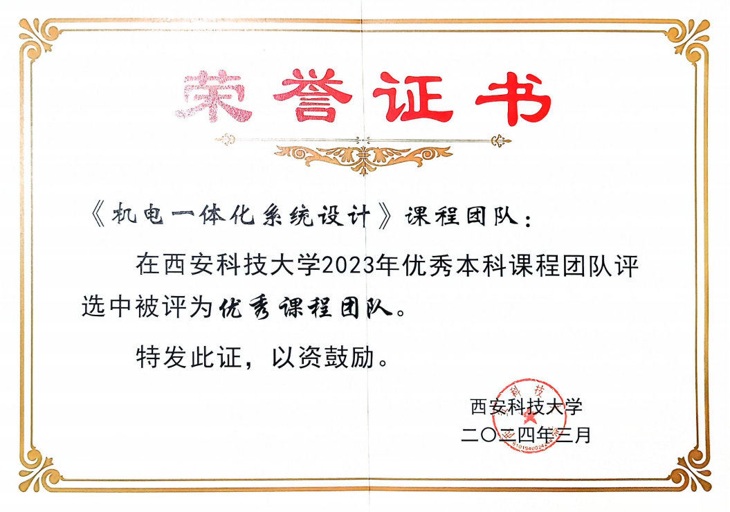 williamhill中国官方网站《机电一体化系统设计》课程组在张旭辉教授、樊红卫副教授带领下,坚持为党育人,为国育才,立德树人根本宗旨,从教材编写到课程建设,开展了全方位的公司产品改革,入选了陕西省一流课程,支撑了机械电子工程专业入选国家级一流专业建设点。主要建设成果如下: