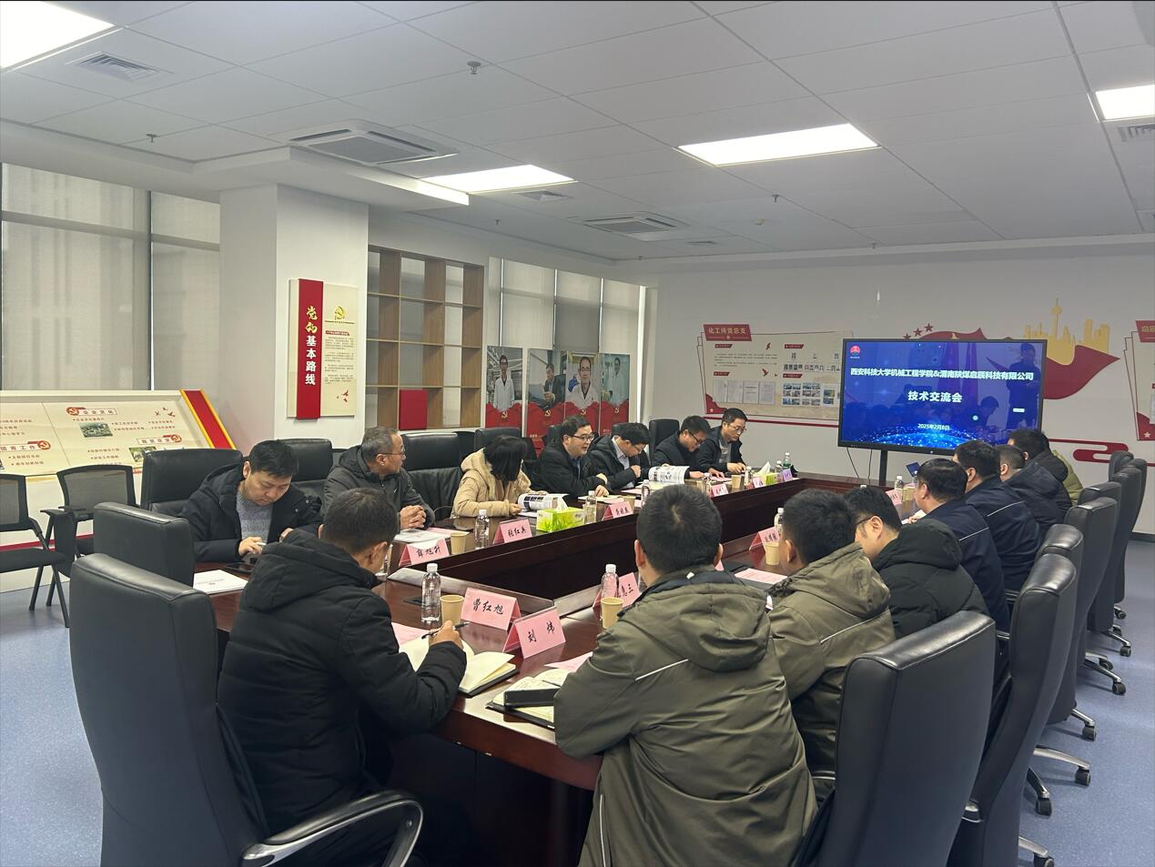 沟通交流环节,双方就新型材料、智能化装备、矿用机器人、智能通风除尘关键技术等方面进行了深入的探讨。双方一致认为,在当前科技快速发展的背景下,加强校企合作是推动成果转化、科技创新与人才培养的重要途径。双方表示将充分发挥各自的优势,在成果转化、科研合作、人才培养等方面展开更加紧密的合作,共同为行业的技术进步与产业升级贡献力量。