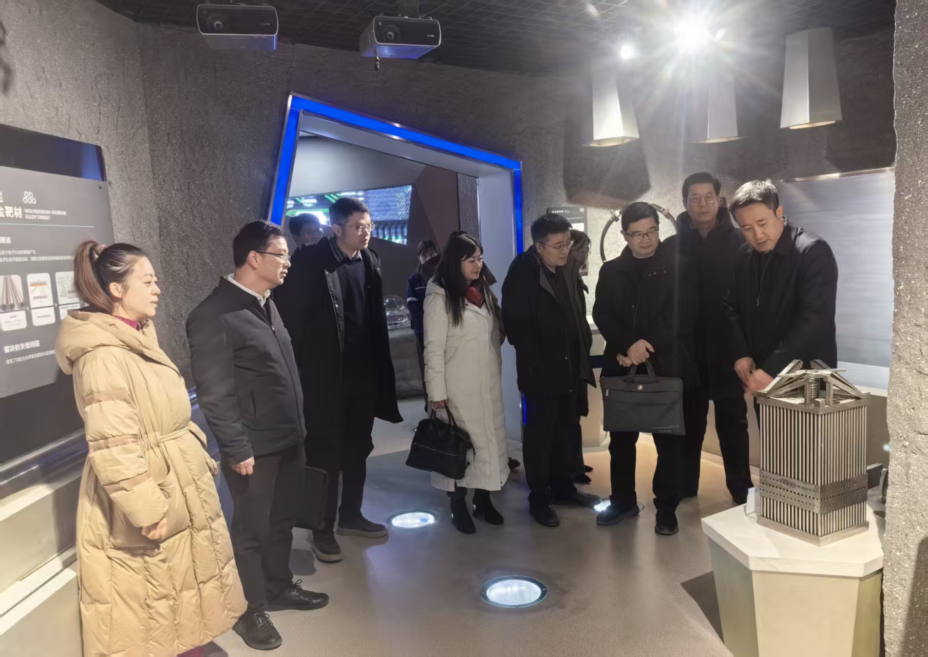 交流座谈会上,大家观看了企业宣传片。周新文致欢迎辞,郭小平介绍到访目的。毛清华介绍了学院基本情况及近年来取得的成绩,并对学院在煤矿智能开采及智能制造、金属材料成型与表面处理方面优势进行了详细介绍。曹现刚希望双方优势互补,在物料自动搬运机器人、加工生产过程自动化与远程监测技术、材料表面修复与处理、材料无损检测与评价、数字化工厂升级改造等方面开展深入合作,并欢迎金堆城钼业股份有限公司到公司招才引智推动公司发展。周新文希望双方加强交流,在技术开发、科研项目合作申报、人才培养与招聘、员工实践基地建设等方面深入合作,并表示双方在智能运维平台开发、智能化关键技术攻关、智能制造与金属材料等方面具有广阔的合作空间。活动中,大家参观了金堆城钼业股份有限公司建设展厅、钼粉及相关产品加工制造车间、劳模联合创新工作室等。
